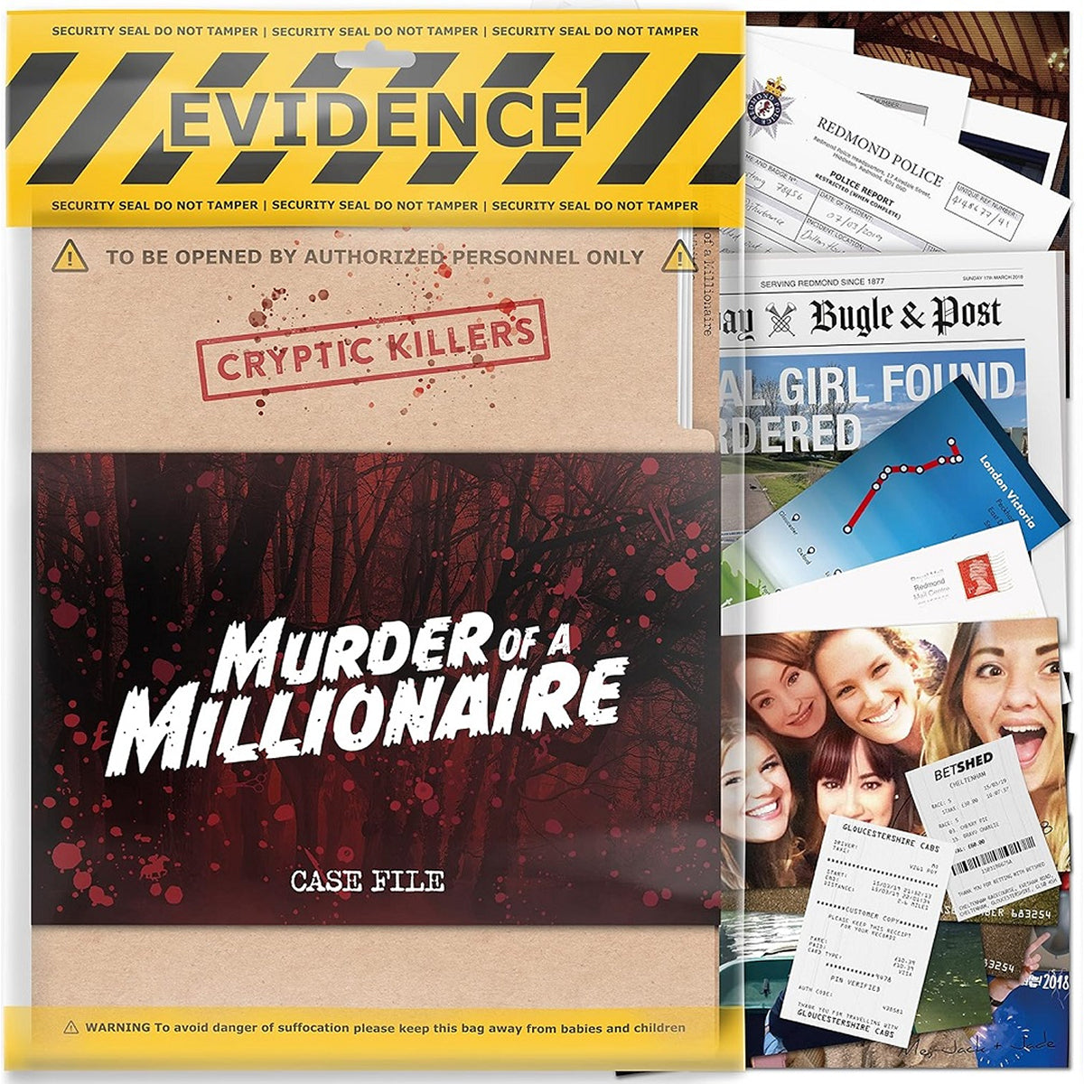 A murder has been committed in Redmond. The body of Chloe Whittle, a millionaire lottery winner, was found late at night in a park with a fatal stab wound to the chest. We’ve identified several suspects and assembled this case file, including photographs, maps, text chains, police reports and more. As the town’s leading detective, we’re relying on you to uncover the truth behind Chloe’s demise. We need you to analyze the evidence. Eliminate as many of the suspects as possible so that we can find the killer (or killers) and bring them to justice!
