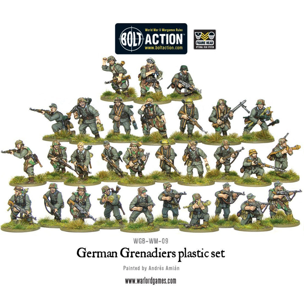 - Enough plastic components to make 30 late war German Army miniatures. Includes a host of options to allow for different weapon configurations and command models.