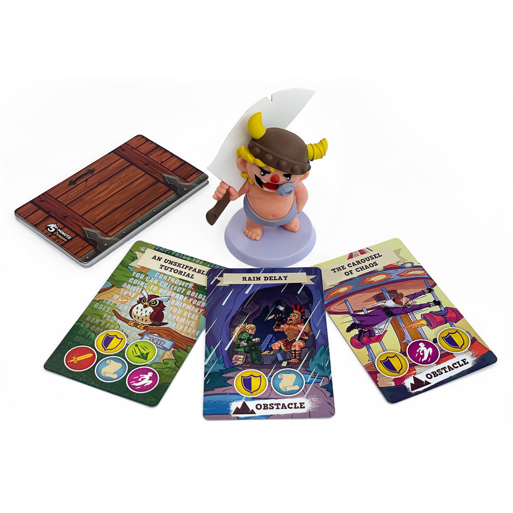 Add some fun to your 5 Minute Dungeon run! The 5 Minute Dungeon: Baby Barbarian includes your very own Barbarian figurine, plus 15 new Dungeon Cards to add to your base game!