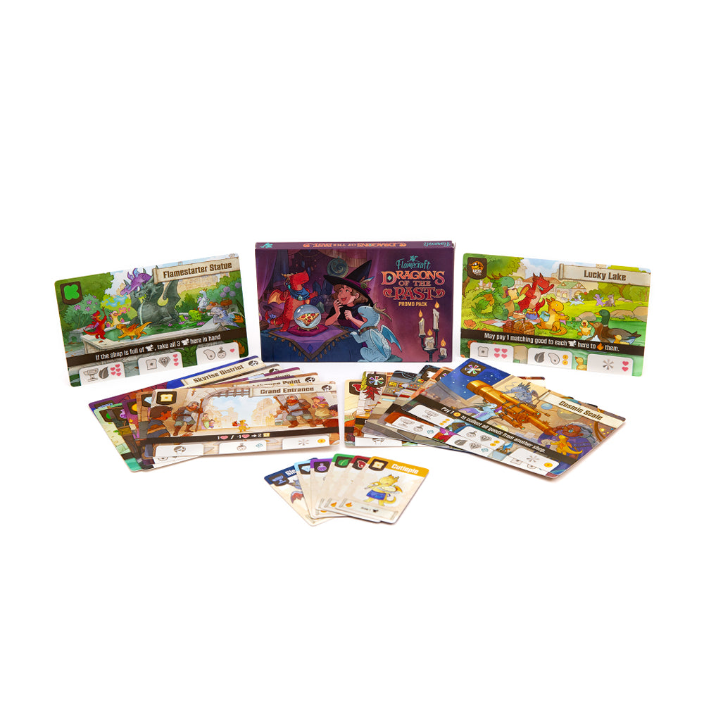 This bundle includes all the past promos for Flamecraft from the original Kickstarter, as well as a handful released after.