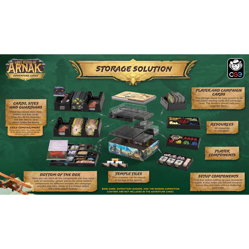 Prepare for another adventure in the world of Lost Ruins of Arnak. Pack all your essentials easily into one Adventure Chest that fits everything you need for journeying in the lush jungles and vast plains of Arnak—and then head out to explore new areas and temples.