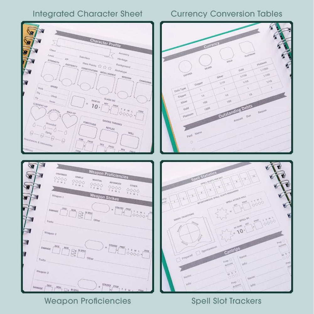 Hurry! Only1units left in stock!Our Pathfinder Character Quest Journals are purpose-built to keep track of your campaign notes and handouts. It has everything you need to manage your Pathfinder campaigns without breaking a sweat. There’s a complete character sheet, and space to write your backstory, appearance features, equipment, spells and more! Plus lined paper, ammo trackers, currency conversion tables and squared paper.