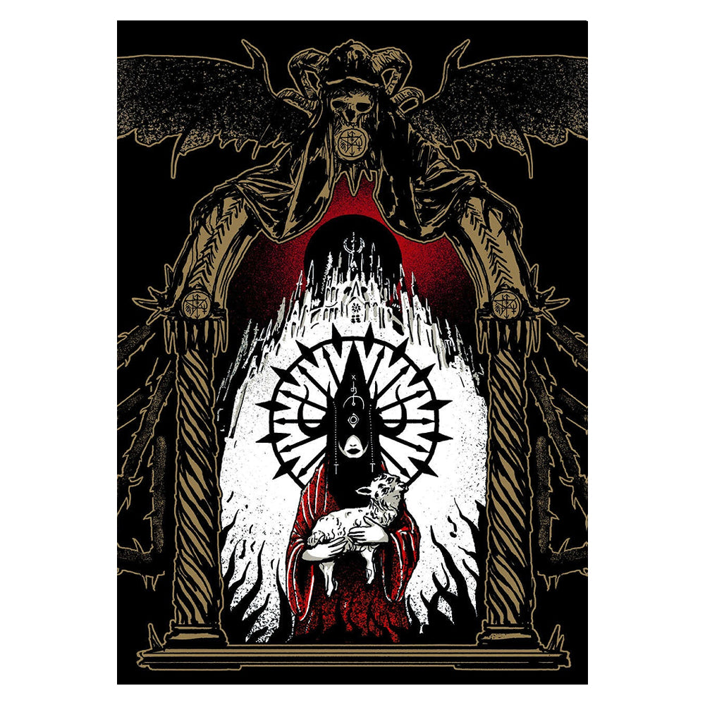 Hurry! Only0units left in stock!MÖRK BORG GM Screen: A five-paneled portrait wall of death. Printed with gold metallic ink on one side and vivid neon yellow on the other. The front is all art, five scenes of various locales and important characters in the Dying world. The GM-facing side sports a wide array of tables and rules summaries that might come in handy during play.